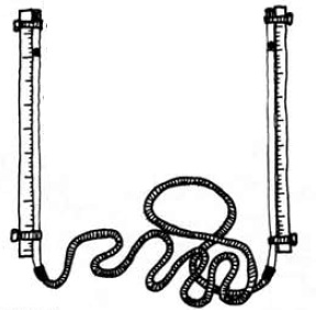 A. ใช้ท่อใสใส่น้ำแล้วนำไปผูกกับไม้ยาวเท่ากันตามรูปข้างล่าง ทำเครื่องหมายของระดับน้ำตอนที่ไม้อยู่ติดกัน แล้วเวลาใช้งานให้คนแรกวางไม้ในแนวดิ่งไว้ที่จุดอ้างอิง และคนที่สองเดินหาจุดที่ห่างออกไปซึ่งเมื่อวางไม้ในแนวดิ่งแล้วจะทำให้น้ำในสายยางได้ระดับเท่ากันทั้ง 2 เสา จุดที่ทำให้ระดับน้ำเท่ากันจะเป็นจุดที่มีระดับเท่ากัน