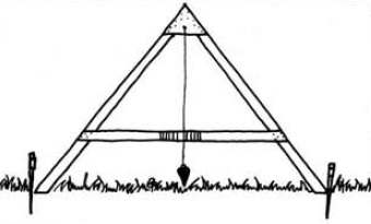 หรือ B. เฟรมรูปตัว A (A-Frame) ซึ่งมีวัตถุถ่วง (เช่น ลูกดิ่ง ก้อนหิน ขวดใส่น้ำ) แล้วลองวัดที่พื้นที่ระดับเท่ากัน ให้ทำตำแหน่งของลูกดิ่งไว้ แล้วกลับสลับตำแหน่งของขาทำเครื่องหมายอีกครั้ง ถ้าพื้นได้ระดับจริงๆ ตำแหน่งทั้งสองจะอยู่ที่เดียวกันเลย ถ้าไม่ได้ระดับก็จะห่างกันเล็กน้อย เวลาใช้งานให้ขาข้างนึงอยู่ที่จุดอ้างอิง แล้วหมุนหาจุดที่จะทำให้ลูกดิ่งหยุดนิ่งอยู่ตรงกลางซึ่งจะเป็นจุดที่มีระดับเท่ากับจุดอ้างอิง