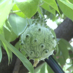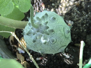 เมื่อเดือนมกราคม ปีนี้ ได้รับความกรุณาจากสมช.Tui ส่งเมล็ดพันธุ์ดังกล่าวให้ มีจุดประสงค์ซึ่งเต็มไปด้วยความตั้งใจมากที่จะให้ สมช.ในเวปบ้านสวนฯ ที่สนใจแตงชนิดนี้ได้ปลูกกัน(ก็บอกมาด้วยว่าแตงหนามนี้มีลักษณะคล้ายเป็นวัชพืชด้วย เติบโตเร็วมาก)