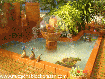 มุมพักผ่อน กับอ่างปลา อิฐประสาน