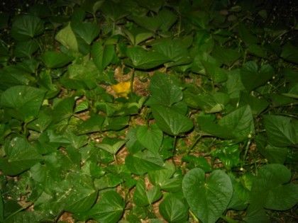 ดงมันปลูกตรงโรงเก็บไม้เก่าพื้นถมด้วยดินลูกรังขาวเมื่อแห้งจะแข็งเหมือนปูน ที่ยอดมันงามได้เพราะน้ำหมักและน้ำขี้วัวสดๆ