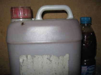 กรอง กากที่เหลือจะเอาไปคลุกกับหญ้าแห้งทำปุ๋ยหมัก