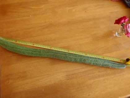 That was the biggest one I've got. I did not use this luffa fruit for the seeds saving. I just wanted to eat big fat juicy luffa rather than saving seeds!! Then I have to buy the seeds next spring again! อันนี้ เป็น ลูก ใหญ่สุด ที่ปลูกมา ปี่นี้ ผมไม่ได้ เก็บเมล็ด ของเขาเอาไว้ ด้วย บวบลูกนั้น ผมต้อง การที่ จะ กิน บวบอ้วนๆ เนื้อ อ่อนๆ มากกว่า ครับ ดังนั้น ผม ต้องไป หาซื้อ เมล็ด อีก รอบครับ ในช่วงใบไม้พลิครับ