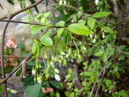 ต้นโมกข์...นึกว่าตายเสียแล้วเห็นเหลือแต่ต้น..แต่พอได้น้ำฝนก็แตกใบพร้อมๆ กับออกดอกเลย..คนก็ งง. ตันไม้ก็ งง. ออกดอกได้ 5 วันก็ร่วงหมด...