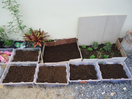 ผักบางอย่าง นาน ๆ จะซื้อหามาปรุงอาหารสักที ซื้อมาแล้วก็เหลือใช้ ไม่รู้จะเอาไปไหนดี สร้างโรงเรียนอนุบาลเพาะไว้ดีกว่า คราวหน้าจะได้ไม่ต้องซื้ออีก