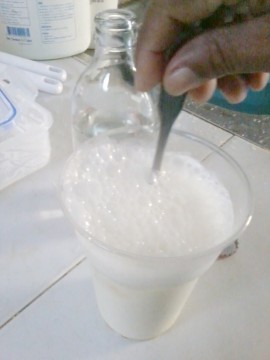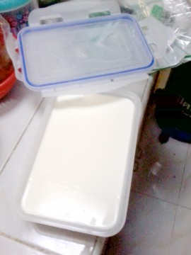 Yoghurt ที่เกิดจากกระบวนการผลิต ฝีมือ ป้าอี๊ด ที่ทำไว้เมื่อสองวันก่อน