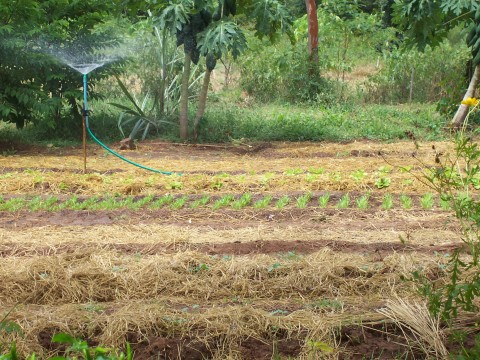 ระบบให้น้ำตามงบประมาณหัวสปริ๊งเกอร์จาก ม.เกษตรฯเป็นพลาสติกทำขึ้นเอง