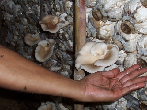 ก้อนเชื้อเห็ดซื้อหรือทำเองค่ะ ออกดอกใหญ่ดีจังค่ะ