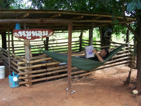 นอนอ่านหนังสือในเปล ไม่นานก็หลับ..น่าสบายนะ