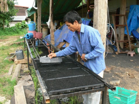พอดีรู้จักกับผู้ช่วยผู้ใหญ่บ้านในหมู่บ้าน...พี่เขาให้คำแนะนำว่าให้เพาะใส่ถาดก็ได้ (พี่ผู้