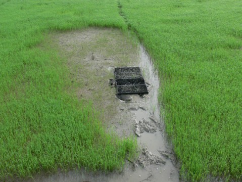 7.จัดการนำไปไว้ในแปลงกล้า...ลุยโคลนลงไปเลยครับ...555..ลึกมากๆ..แต่ไม่ใช้