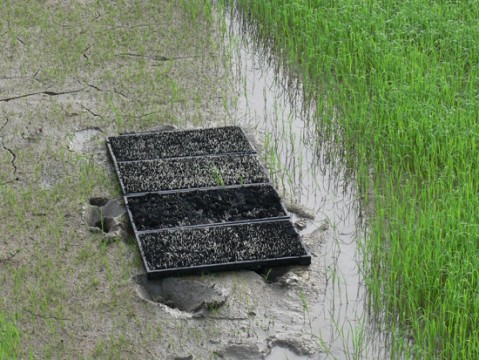 ถอนกล้าในแปลงกล้า.ข้าวเหนียว กข.6 และก็มีถาดข้าวก่ำ 4 ซึ่งข้าวที่เพาะในถาดจะให้