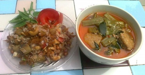 แกงเทโพผักบุ้งแม่น้ำกับปลาอีโต้มอญ (ฝีมือแม่ทำ