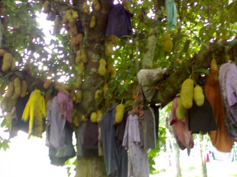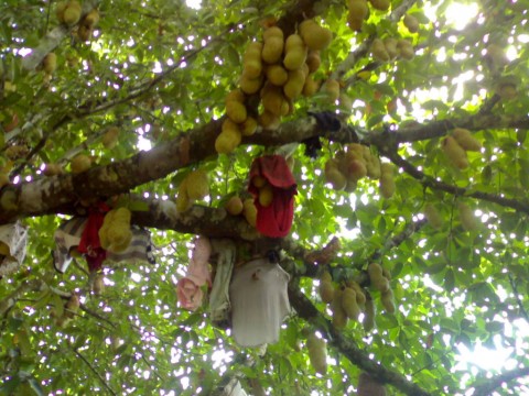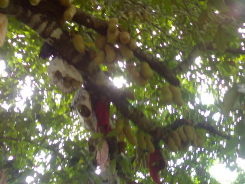สวัสดีค่ะ ชาวบ้านสวนทุกๆคน อาจจะหายหน้า หายตา หายตัวไปร่วมเดือน เพราะหน้าที่ที่ยังไม่ลงตัว วันนี้เป็นโอกาสดี เอาผลไม้แปลกมาให้ชมกันขำๆแล้วกัน ที่เห็นนี้เป็นจำปะดะซึ่งดกมากแต่แต่สำคัญกว่าความดกคือ เป็นจำปาดะใส่เสื้อและใส่ผ้าคลุมหัว ส่วนรสชาติไว้อีก สามเดือนค่อยมารายงานค่ะ