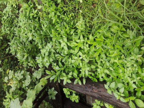 ถัดจากมะเขือพวงมา เป็นแนวต้นอ่อมแซบค่ะ ปลูกเป็นดงๆเลย ไม่รู้สีอะไร เป็นสีอะไร