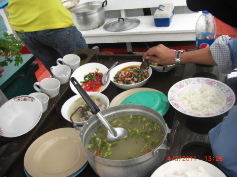 กับข้าวเส็รจแล้ว มากินข้าวกับ งานนี้มีเมาเรือนิดหน่อย