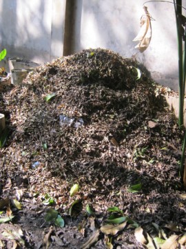 น่าเบื่อมากเลยกะปลวก..เปิ้ล..พี่ว่าจะไม่เอาแล้ว ใช้เศษใบไม้ดีกว่า ใบปีปที่ร่วง กำลังรอผสมดินอยู่อีก 2 กองใหญ่ๆ