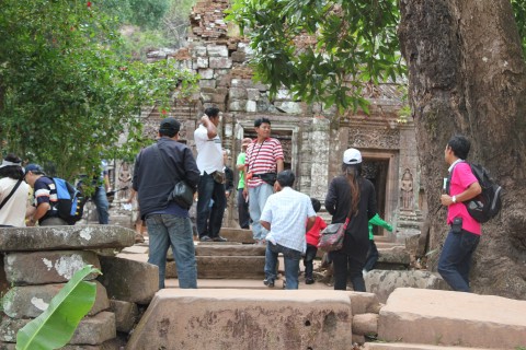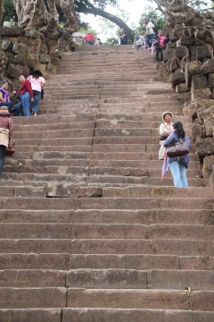 ซันที่รี่...ชันมากค่ะ ยังดีทำชานให้พักขา ยิ่งมีไกด์สาว ๆ พาลูกทัวร์ขึ้นไป ใส่ผ้าถุงด้วย ข้างล่างตรงนี้ มีแต่พวกผู้ชาย ชีกอ นั่งกันค่ะ...ป้าเล็ก ถ้าป้าไปนั่งอีกคน เขาจะมองป้าแปลก ๆ นะคะ ขึ้นไปด้วยกันดีกว่า่...บอกแล้วให้กินน้ำหมัก...กลัวอยู่ได้