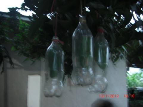 เจาะตูดขวดด้วยนะครับเพื่อไม่ให้น้ำขัง