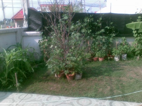 ซ้ายมือคือต้นข้าวโพดด้านหลังบ้าน พี่แหม่มปลูกเมื่อ7ม.ค55 (ถ่ายเมื่อวานนี้)