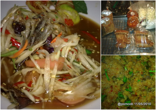 ส้่มตำปูปลาร้า ครับ อ้อ ส้มปลา ลาบปลาดุก แล้วก็ ขนมจีนน้ำเงี้ยว ครับ