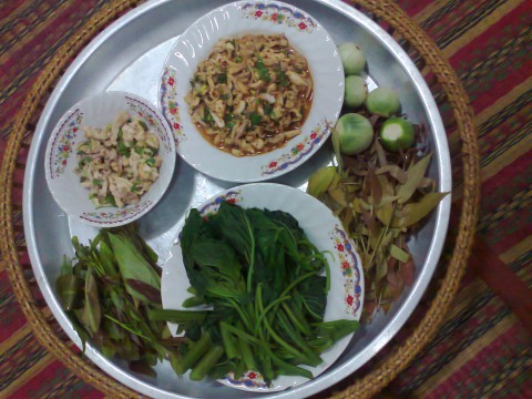 เมนูลาบไก่ ผักแนมจากบ้านพี่ทั้งสองค่ะ รับรองไม่เสียเปล่ากินให้หมด ช่วงนี้เป็นอาหารอิสานก่อนค่ะ เพราะผักที่ได้มามันเหมาะกับอาหารทางบ้านค่ะ