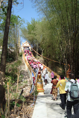 เดินจากหนองเล่มขึ้นสะพานบุญ เข้าเขตวัดแล้วครับ