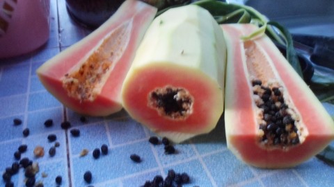 มะละกอต้นนี้ สีสวยสุกอร่อยมากค่ะ เก็บเมล็ดไว้ปลูกต่อค่ะ