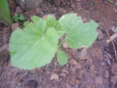 เมล็ดฟักเขียว(ลูกใหญ่) จากผู้ใหญ่โสธร เพาะ 3 หลุม ๆ ละ 3 เมล็ด