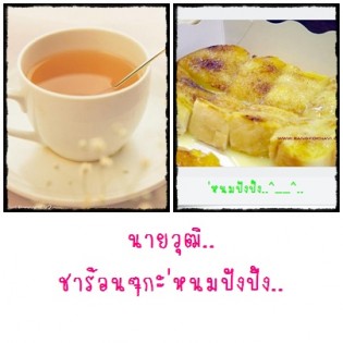ไม่เช้าแล้วแต่จะมาขอดื่มชาเย็นร้อนๆสักเเก้ว กะ ปังปิ้งสักแผ่น ^^