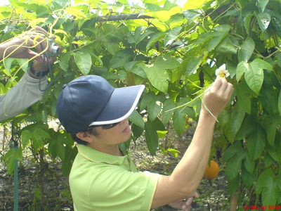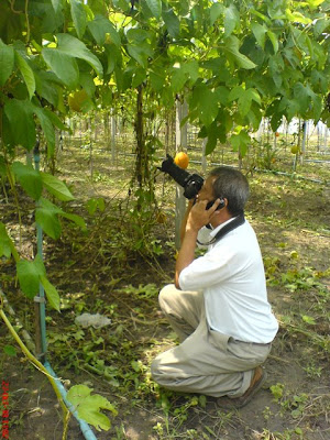 อันนี้ต้องขยาย..ด้วยความที่ชอบการผสมพันธ์..ไม่ใช่สิ..พูดงี้เด๋วโดนบี้อีก..ด้วยความที่ชอบเห็นพืชพันธ์ได้แพร่ขยายไป..คุณน้อยเจ้าของสวนเลยแนะนำให้ช่วยทำการผสมพันธ์ฟักข้าว..พอได้ยินคำว่าผสมพันธ์..ตาทุกคู่..กล้องทุกตัวต่างจับจ้อง..ไม่เว้นแม้แต่สาวๆที่ไปด้วย..เลยได้ภาพการช่วยผสมพันธ์ของดอกตัวผู้กะดอกตัวเมียอย่างในภาพ..คิดกันไปถีงไหนเนี่ย..