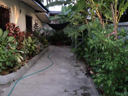 มาดูที่บ้านตอนนี้บ้างค่ะ นี่กวาดเสร็จใหม่ๆนะ ใบไม้ร่วงเยอะมาก ซ้ายมือเป็นไม้ประดับก็ดูเอานะ ด้านขวามือเป็นไม้กิน ดูไล่ไปเลย ตั้งแต่ พริกหอม ขนุน มะละกอ กล้วยเล็บมือนาง(มีเครือ) หอมทองเพชรบุรี 3กอ ( 2เครือ) หอมทองอุบล น้ำว้าเตี้ย หอมเขียว (ที่ยาว 10 เมตร ปลูก 7 กอ แถมปลูกอย่างอื่นอีกเพียบ)