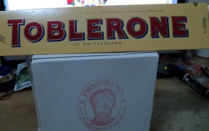 สำหรับอันนี้ ช็อกโกแล็ตได้จากแขกต่างประเทศผู้มาเยือนแบบสายฟ้าแลบ คุณต่อขวัญคืน ( ตัวจริงสวยค่ะ ) มากับ สาววาริน เอาซาลาเปาวารินมาฝาก ป้าเล็กก็วุ่นวายแต่กับหมีน้อย กลัวกัดเขา ไม่ได้ถ่ายรูปเลย รอรูปจากเขา