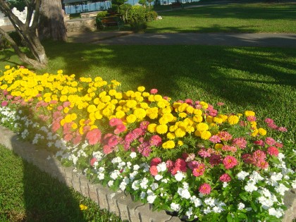 รูปดอกไม้หลากสีรอบ ๆ ต้นไม้แถวชายหาด
