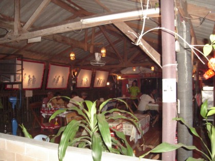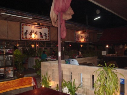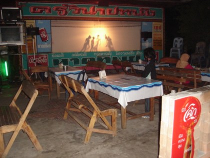 ดื่มน้ำก่อนค่ะ..กิน ดื่ม ไป ดูหนังไปค่ะ ไม่ใช่แสดงสด เขาเปิดเทปเอา แต่มีคนเชิดหนังตามเทปค่ะ
