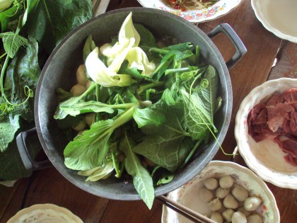 ผักสด ๆจากในสวน ดอกแค ยอดฟักแม้วพี่บุ๋ม/น้องโน่ ฮ่องเต้น้องโสทร ผักบุ้ง กาดเขียว ถั่วฝักยาวลูกมะโหน่ง