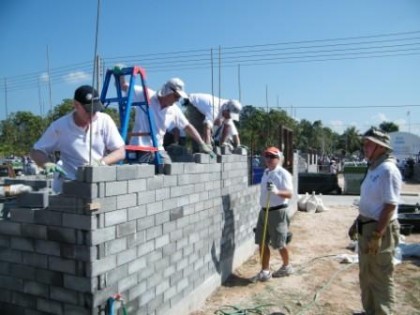 นี่เป็นการก่อสร้างบ้านในโครงการของอดีตประธานาธิบดีจิมคาร์เตอร์ของสหรัฐ ที่สร้างบ้านให้ผู้ไม่มีบ้านครับ กี่ร้อยหลังไม่ทราบเมื่อปีที่แล้วที่เชียงใหม่ครับ หลังนึงใช้เวาลาก่อสร้าง 2 วันครับ แต่เขาจะเทพื้นรอไว้ก่อนแล้ว วันแรกก็ให้สมาชิกช่วยกันเรียงอิฐใส่วงกบได้เลย วันที่สองก็ใส่หลังคาครับ วันหลังจะเอาบทความมาให้อ่านครับเกี่ยวกับโครงการนี้