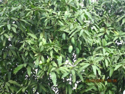 วันนี้เข้าสวนเดินดูโน่นดีนี่เห็นมะม่วงลูกโตท่าทางน่าจะกินได้แล้วก็เลยจัดการสอยมาเสีย 2 ลูก ทำน้ำปลาหวานซะเลย อยากเห็นแล้วใช่ไหมล่ะคะว่าหน้าตาจะออกมาเป็นอย่างไร