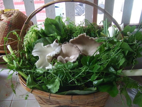 เมื่อเช้าไปชอปที่ Paragon มา เอ๊ยไม่ใช่ เข้าไร่มา กะว่าจะแกงเลียงค่ะ เลยเก็บผักมาซะเยอะ ตามที่เห็นค่ะ พอดีเมื่อคืนฝนตกหนัก ผักก็เลยสดชื่นอย่างแรง น่าเก็บเป็นที่สุด เก็บเพลินเหลือกินเลย ที่เห็นในตะกร้า ส่วนใหญ่จะเป็นที่ไร่ มีข้างบ้านบ้างนิดหน่อย มาดูกันค่ะมีอะไรบ้าง