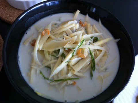 ไผ่ตงลืมแล้งหน่อสดๆส่งตรงจากร้อยเอ็ด กลายมาเป็น ต้มกะทิหน่อไม้สด แบบชาวปักษ์ใต้ เมนูนี้กินบ่อยมากสมัยเด็กๆลูกหลานชาวสะตอทั้งหลายคงรู้จักกันดี นะครับ อยู่เมืองนอกหากินยากครับหน่อไม้สดนี่ ยากจริงๆ ขอบคุณเสี่ยป้อม สมาชิกบ้านสวน ที่กรุณาจัดการส่งมาให้ได้ชิมถึงสวิส มาไกลจริง ขอบคุณคร้าบ