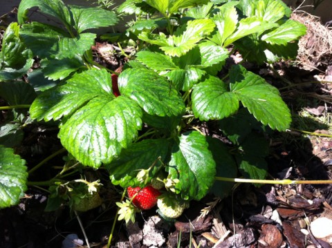 สตรอเบอรี่ เป็นพืชที่ปลูกง่ายโตง่ายสำหรับเมืองหนาวแบบนี้ ผมปลูกไว้6กอ ตอนนี้แตกกอ ออกดอกออกผลให้ได้กินตลอด ช่วงแรกรุ่นแรกออกลูกมาไม่ค่อยโต อ๊อดบอกว่าสงสัยขาดการบำรุงผมเลยจัดหนักอัดปุ๋ยให้ ปรากฎว่าดีครับลูกใหญ่หวาน และไหลเริ่มเยอะ ช่วงนี้มีไหลหรือแขนงแตกออกมาเยอะมาก เลื้อยไปเรื่อยๆ ตามข้อก็แตกเป็นต้นใหม่ ผมเห็นว่าถ้าปล่อยให้ไหลแบบไม่มีทิศทาง คงดูแลยาก เลยจับให้ไหลลงกระถางซะ เผื่อได้เอาไปปลูกที่อื่นบ้าง มาดูรูปกันครับ
