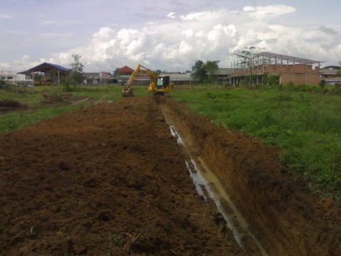 วันที่ 21 พ.ค. 2554 ยกร่องปลูกกล้วย เพราะหลังบ้านด้านข้างติดคลอง ฝนตกไม่กี่ห่า น้ำก็ท่วมแล้ว ยกร่องทำคูระบายน้ำ