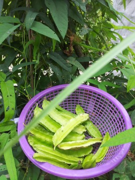 รื้อต้นบวบน้องแจ้วออก แล้วลงถั่วพูคุณแดง อุบล และป้าเล็กไว้ด้วยกัน