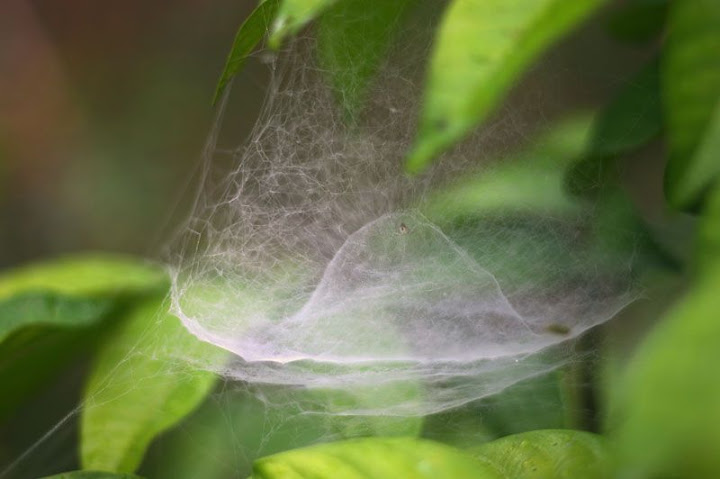 เช้าวันนี้เลยได้เห็นกับดักขาวๆ กระจายไปทั่วตามต้นไม้ใบหญ้า..