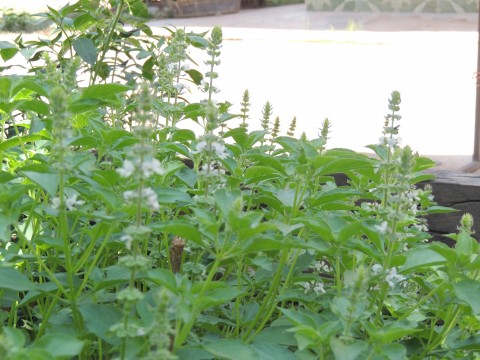สะระแหน่ปลูกในกระถาง อยู่ใต้ซุ้มกล้วยไม้ จะได้แดดเฉพาะช่วงบ่าย
