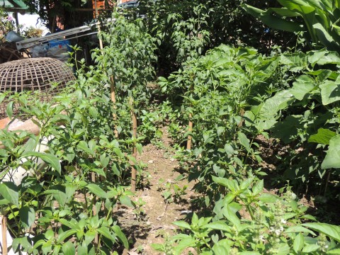 ตรงนี้เอาหน้าดินมาลง ปลูกพริก ต้นแมงลัก มะเขือ งามมาก ๆ ค่ะ