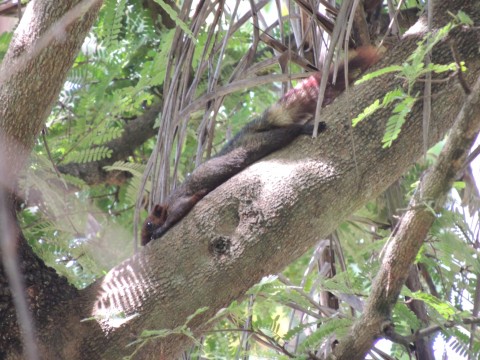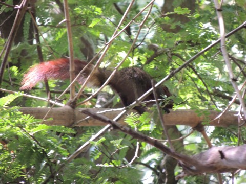 กลับกันดีกว่า เอ๊ะ อะไรวิ่งแว๊บ ๆ อยู่บนต้นไม้น่ะ อ๋อ ขโมยประจำสวนนี่เอง