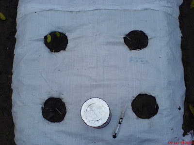 จากปัญหาเปล่านี้ถ้ามีวัสดุคลุมดินก็จะช่วยเก็บรักษาความชื้นไว้ได้ ซึ่งผมผมเคยเห็นว่าเขามีพลาสติกคลุมดินซึ่งต้องซื้อ ไม่เอาดีกว่าไม่จำเป็น แต่...ผมมีกระสอบอาหารไก่เป็นร้อยๆ กระสอบซึ่งขอมาจากญาติที่เลี้ยงไก่ สามารถเอามาคลุมร่องผักได้ตามภาพ