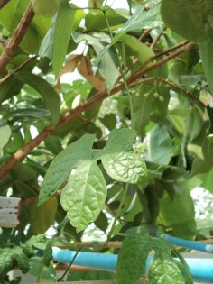 ฟักข้าวไต่ขึ้นต้นชมพู่ ชมพู่ก็ออกดอก ปีนี้คงติดลูกให้ดู ยังไม่รู้เลยว่าสีอะไร