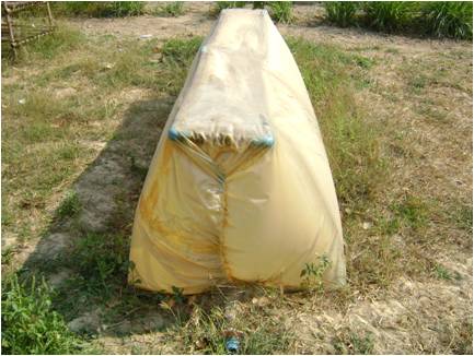 ขุดหลุมกว้างประมาณ 1.75 เมตร ลึก 75 ซม. ยาว 3.75 เมตร (แล้วแต่ขนาดพื้นที่)